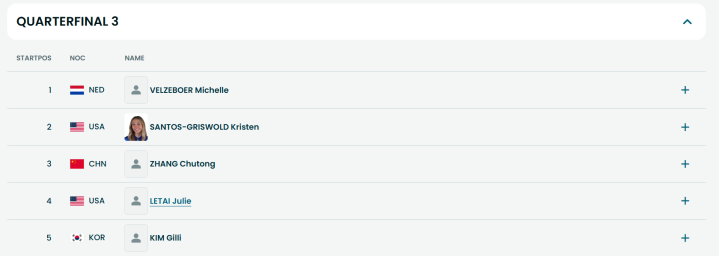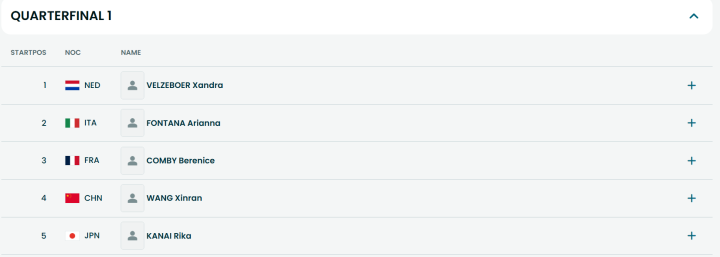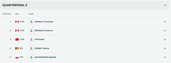 赛前,冬奥会官网更新了1/4决赛该项目的各组运动员名单: